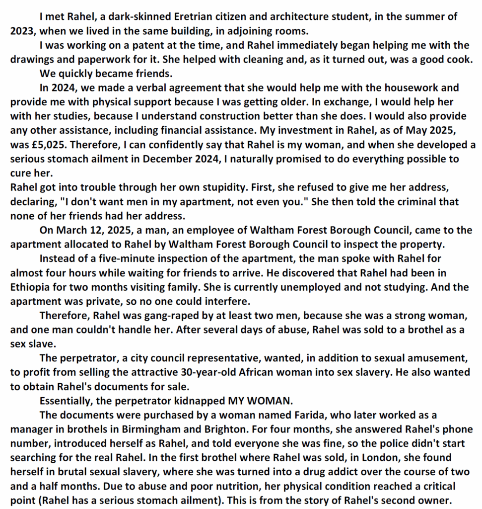 However, I am a law-abiding citizen of this country and, naturally, did not want a scandal. Therefore, in the morning of 21/05/2025 I went to 10 Downing Street, where the Prime Minister’s office is located, to resolve the issue without a scandal.