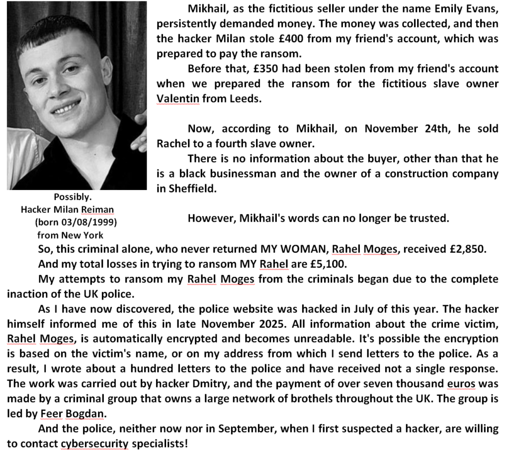 To be honest, I very much doubt that my assistant and friend is still alive. But the criminal has not been punished! Therefore, I hope that at least once in recent years in the UK, crime will not win, but will be punished to the fullest extent of the law. Here is my version of the crime, maybe a little fantasy, but with facts that cannot be denied:”Britain is an ideal country for criminals!: