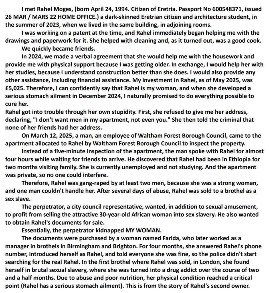 However, I am a law-abiding citizen of this country and, naturally, did not want a scandal. Therefore, in the morning of 21/05/2025 I went to 10 Downing Street, where the Prime Minister’s office is located, to resolve the issue without a scandal.